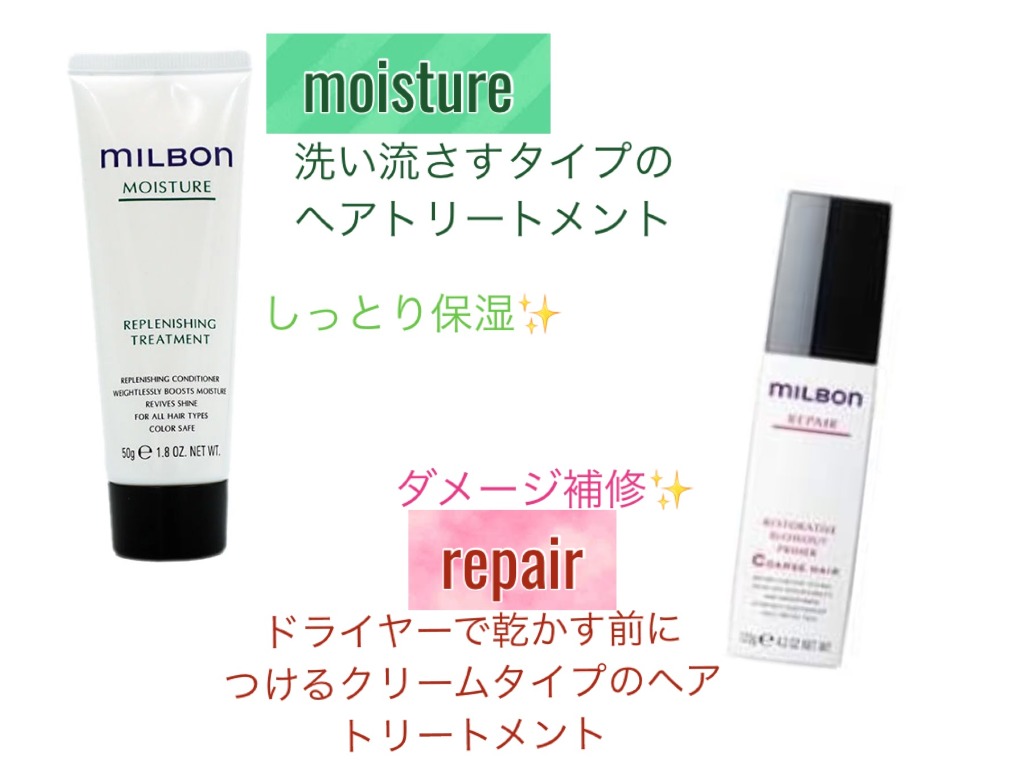 シャンプー後の洗い流すタイプのトリートメントと、ドライヤー前につけるクリームタイプのトリートメントになります。